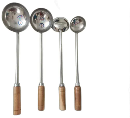 Heavy-Duty Stainless Steel Ladle with Ergonomic Wooden Handle