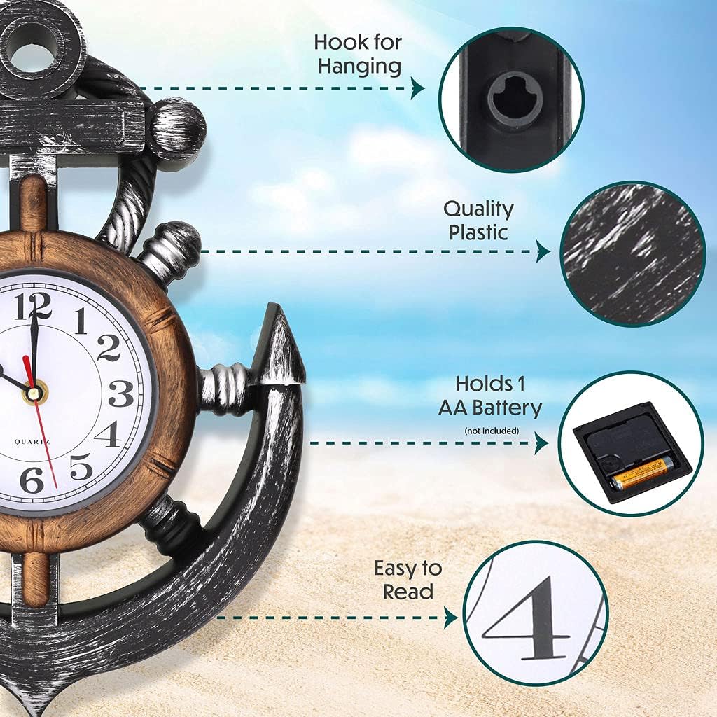 • An anchor and ship’s wheel fuses with a clock to create this charming functional wall decoration