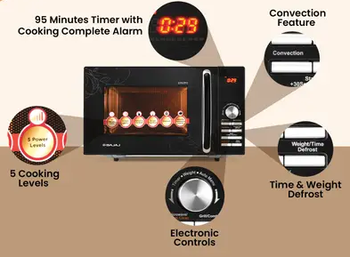 This feature allows you to control the temperature as per the cooking requirement Includes: Convection Microwave oven, warranty card and user manual
