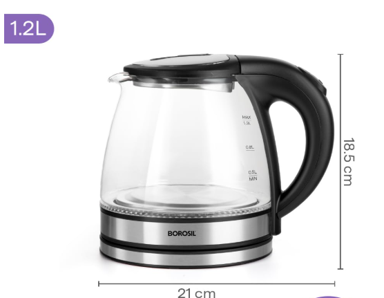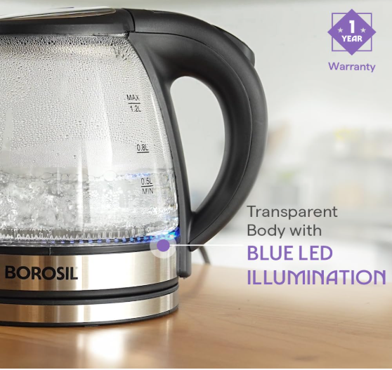 • Warranty : This glass kettle comes with a 1-year warranty by Borosil against any manufacturing defects.