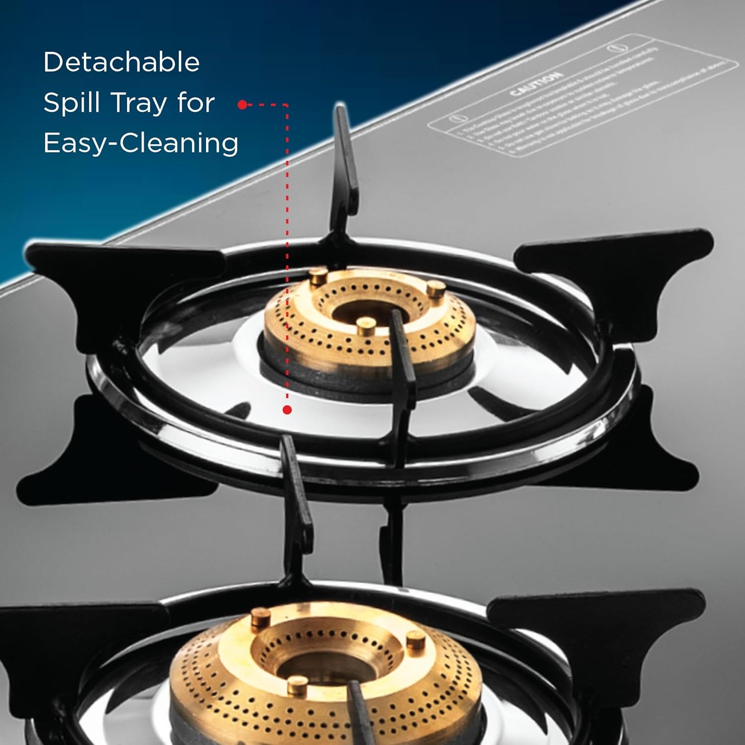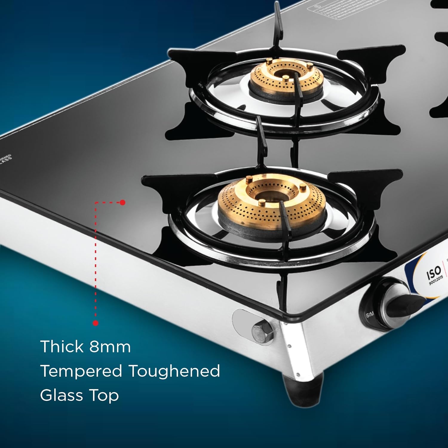 • Our Lightweight glass top gas stove equipped with high quality easy to clean glass , integrated drip tray and 360 degree nozzle exponentially elevates the ease of use quotient