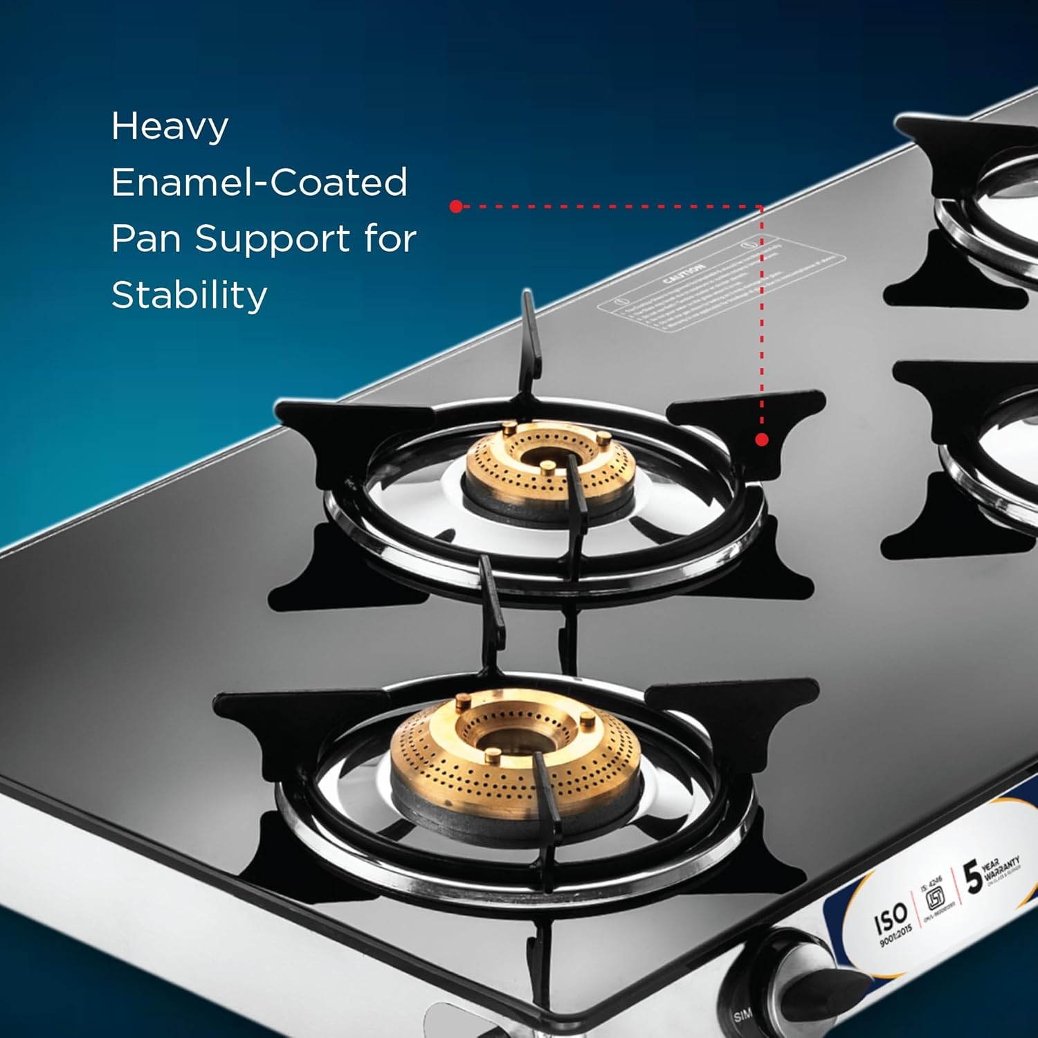 • Equipped with a highly durable ADC 12 mixing tube and Fully rustproof powder-coated GI, this stove also features heavy-duty burners and robustly forged pan stands, ensuring longevity and reliability for years to come