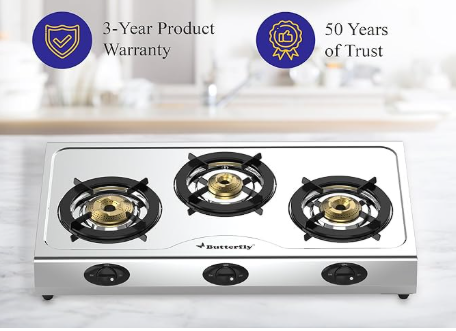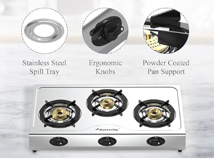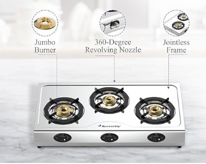 Butterfly Bolt 3B Stainless Steel Lpg Open Gas Stove, Silver