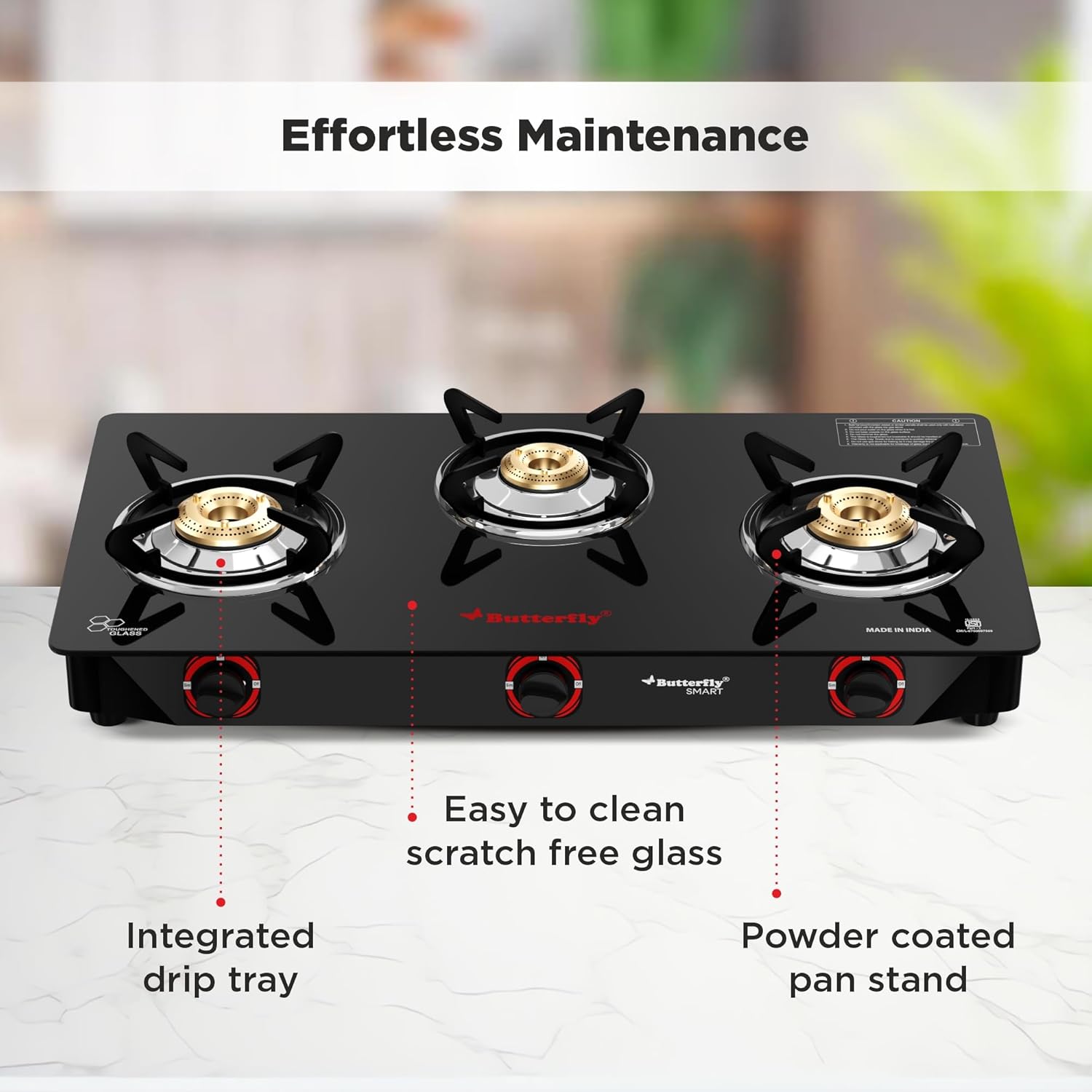 Stainless steel spill trays of trio gas stove ensure less chances of rusting and low maintenance; This unique feature aids in efficient cleaning.