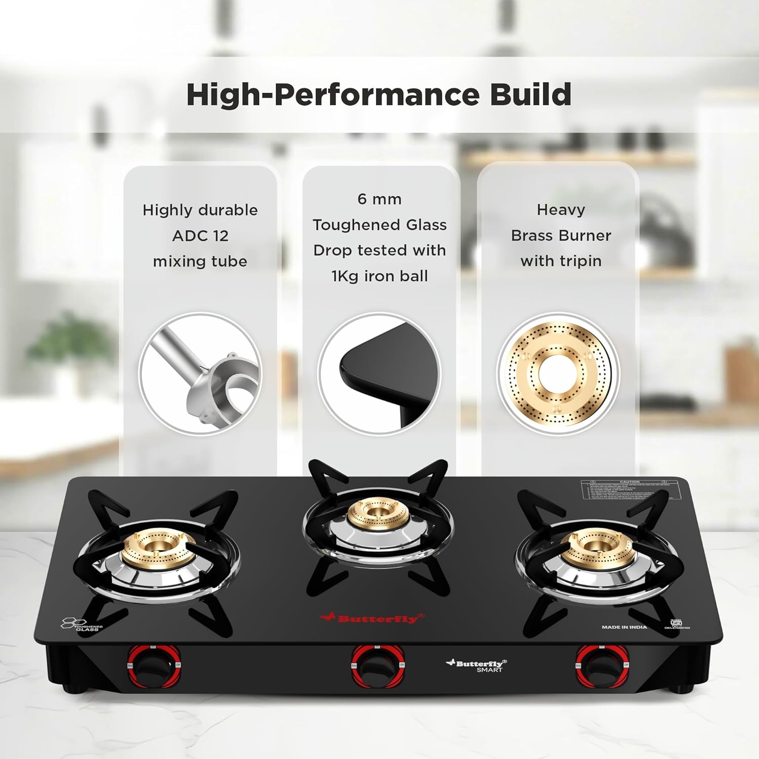 The brass burners of the appliance ensure equal distribution of heat which aids in proper cooking processes; Since brass has a high thermal efficiency, it ensures optimum retention of heat while cooking.