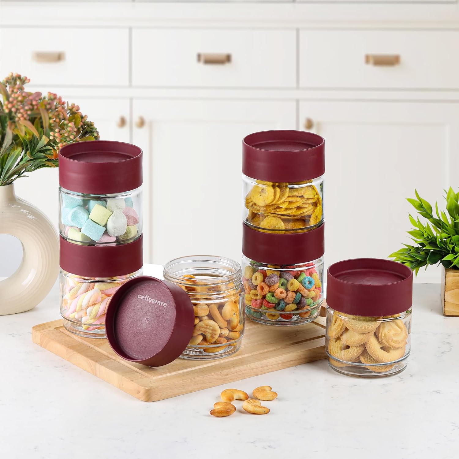 •  Stackable lid: These containers can be easily stacked one over other when in use and nested one inside the other when not in use, this helps save space and organize your kitchen.