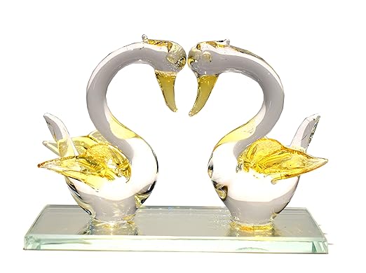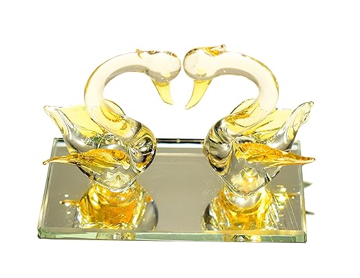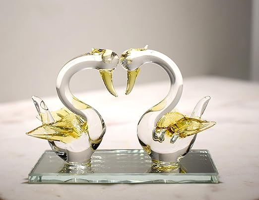Crystal Glass Swan Pair Handcrafted for Home Decor