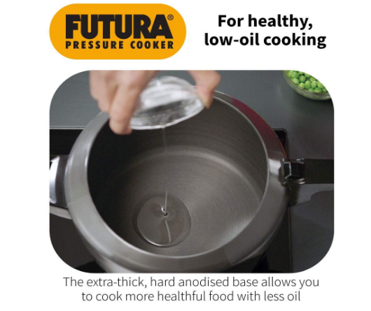 • Base 6.35 mm thick : stays flat, heats evenly and is ideal for light frying before pressure cooking