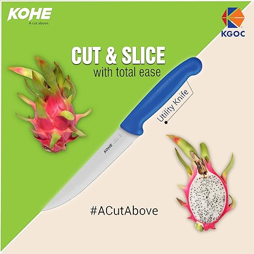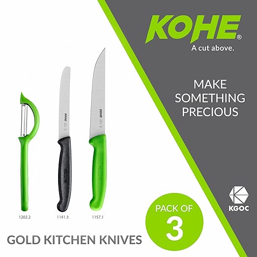 - CONICALLY GROUND: The knife is conically ground on full length and crosswise blade for easy and effortless cutting/slicing. Also the knife comes in 3 color handle – Red, Green, Black.
