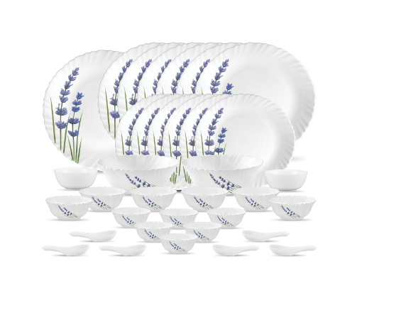 • Sales Package: 6-Pcs Full Plate, 6-Pcs Quarter Plate, 1-Pc Rice Plate, 2-Pcs Serving Bowl, 6-Pcs Soup Bowl, 6- Pcs Veg Bowl, 6-Pcs Spoon, 2-Pcs Chutney Bowl