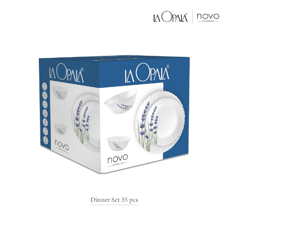 LAOPALA Pack of 35 Opalware Green 35 Pcs Dinner Set (White, Microwave Safe)