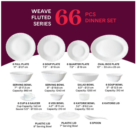 Weave Fluted Series Opalware Dinner Set | 66 Pieces