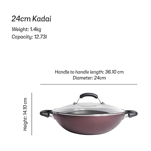 • 🥘 Totally TOXIN-FREE Non-Stick Kadai. US FDA & European Food Safety Authority approved coating inside and out
