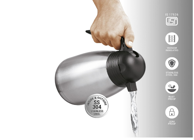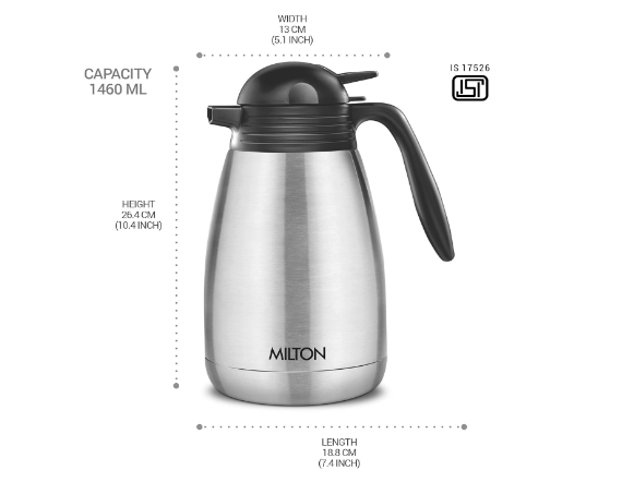 - Color: Silver; Material: Stainless Steel; Package Contents: 1- Piece Carafe (1460 ml); For any queries kindly reach customer care number as mentioned on the product packaging along with the proof of purchase.