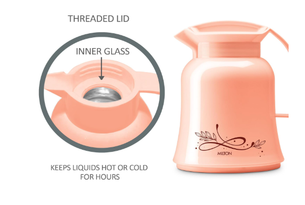 Milton Crystal 500 Vacuum Insulated Inner Glass Hot or Cold Flask, 500 ml, Peach