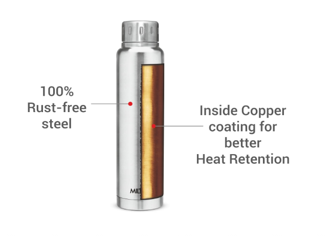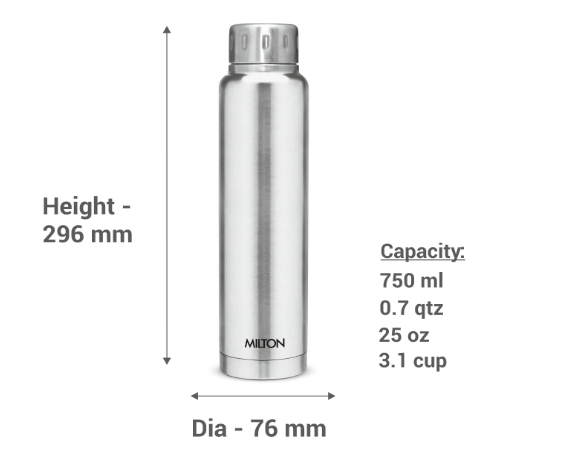 • 50 YEARS OF INDIAN INNOVATION : Milton Water Bottle has Double walled Vacuum Insulated technology that keeps beverages Hot or Cold for 24 hours