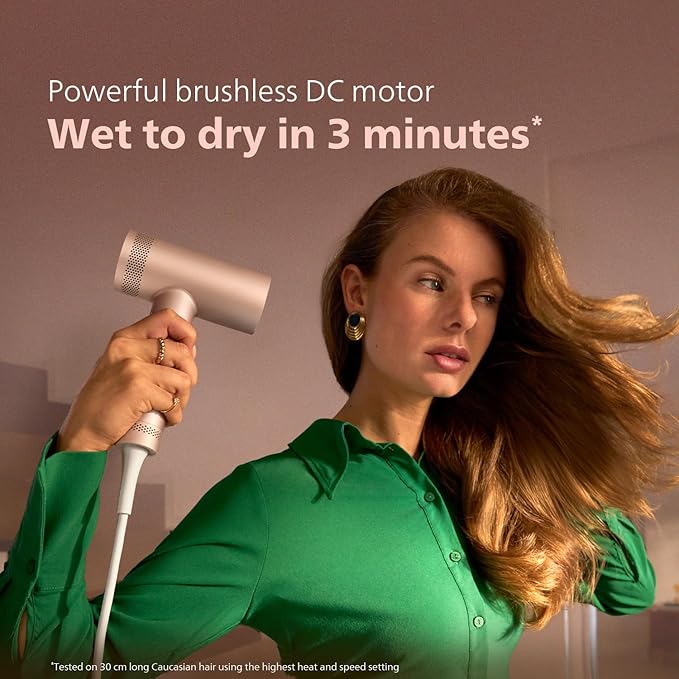 Energy Efficient: Uses up to 50% less energy.**Our most powerful brushless DC motor for fast drying in a maximum of 3 minutes or less¹, with up to 110,000 revolutions per minute and efficient dry air flow at 228 km/h