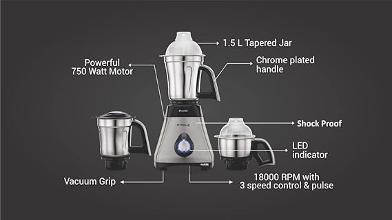 Preethi Steele Max Mixer Grinder for Kitchen| VEGA W5 750 Watt