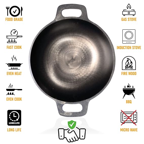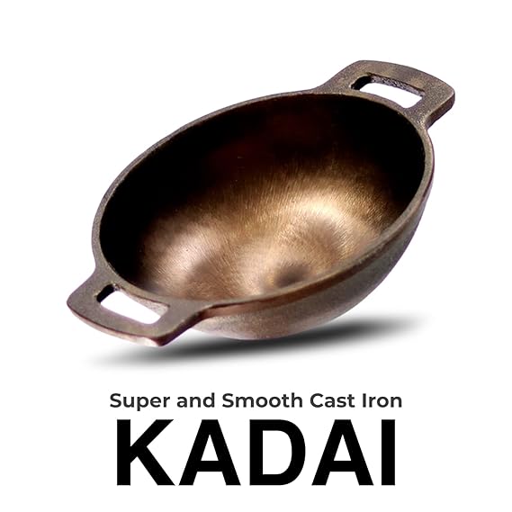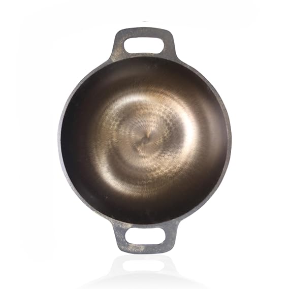 Premium Pre-Seasoned Cast Iron Kadai for Cooking | Heavy Duty Iron Cookware