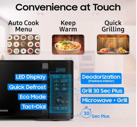 - Grill Microwave Oven: Ideal for everyday cooking needs, grilling, reheating, defrosting.